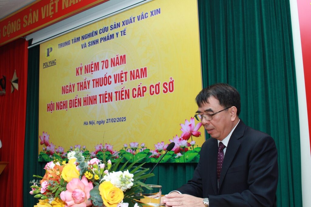 GS.TS Nguyễn Đăng Hiền, Giám đốc Trung tâm POLYVAC phát biểu tại Kỷ niệm 70 năm Ngày Thầy thuốc Việt Nam và Hội nghị điển hình tiên tiến cấp cơ sở Trung tâm POLYVAC.
